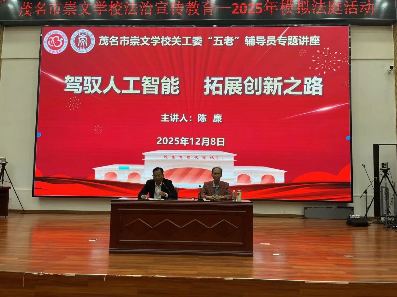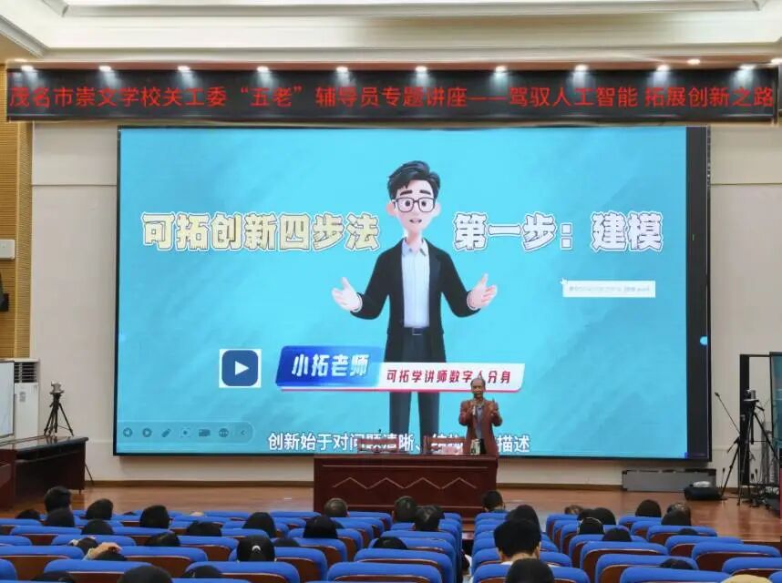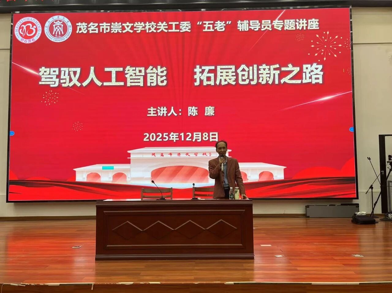 近日,我校在学术报告厅举办“人工智能背景下未来教育的变革”主题研讨活动。本次活动特邀中国人工智能学会可拓学专业委员会顾问、茂名市教育学会第三届理事会副会长陈廉老师出席并主讲。活动由学校党总支书记梁汉强主持,全校220名教职员工共同参与。